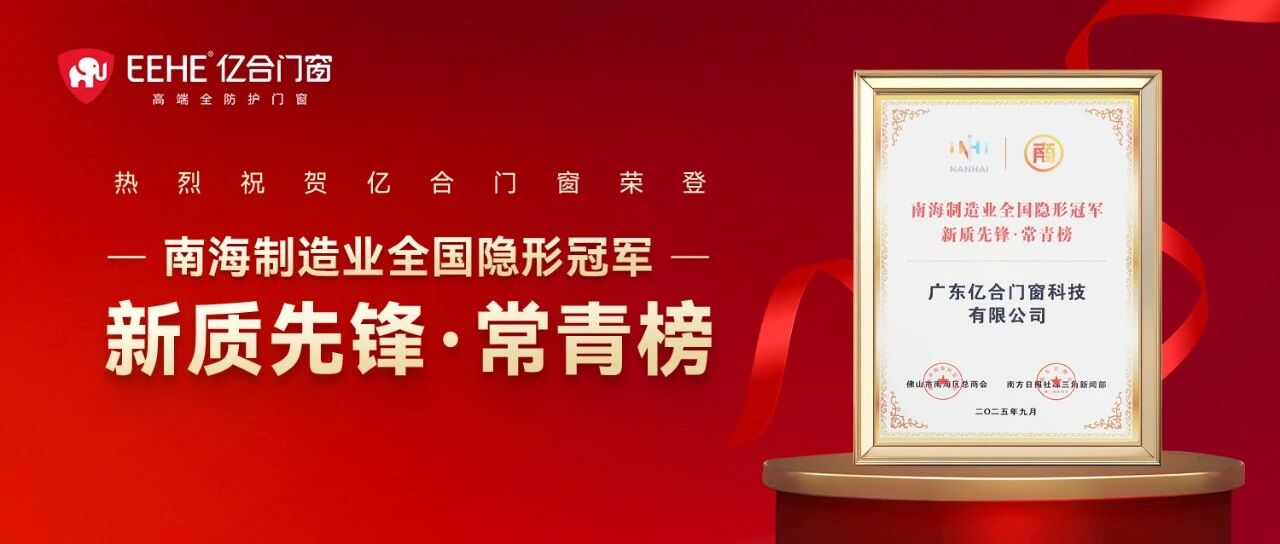 喜訊!億合門窗榮登“南海制造業(yè)全國隱形冠軍”新質(zhì)先鋒·常青榜